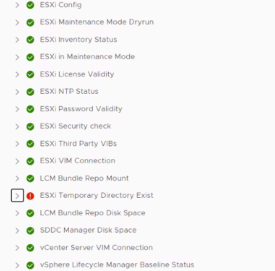 Today When we were performing Pre-check for VCF 4.4 to 4.5 upgrade, one of the ESXi host was keep on failing at step ESXi Temporary Directory Exist.