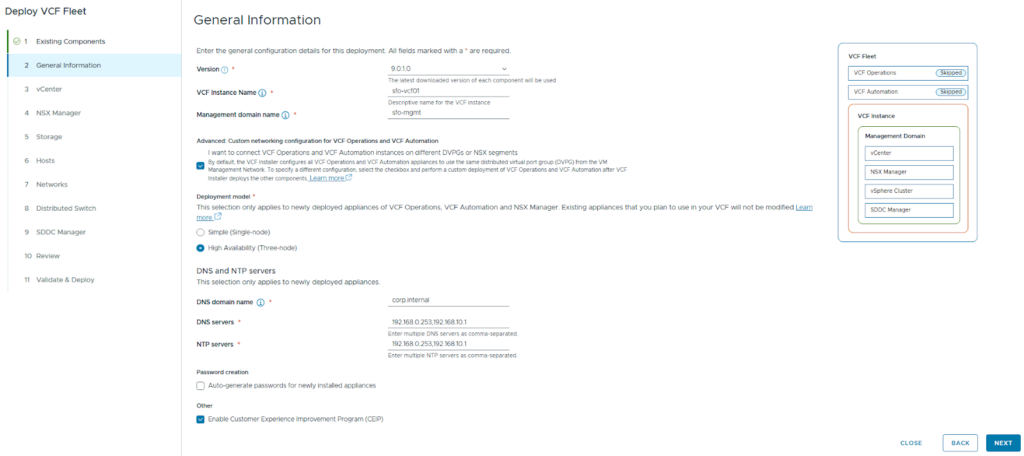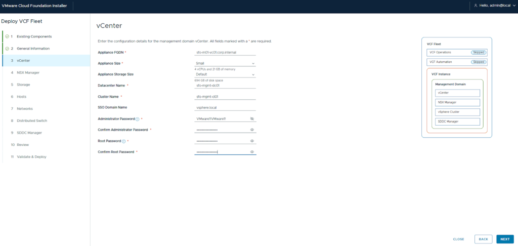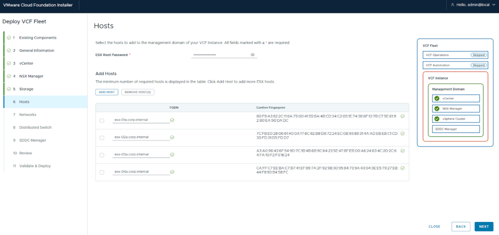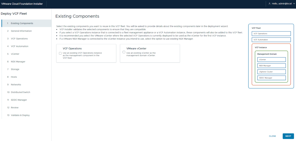 - Launch the Wizard: Open the VCF Installer UI and select “VMware Cloud Foundation” under the deployment wizard.