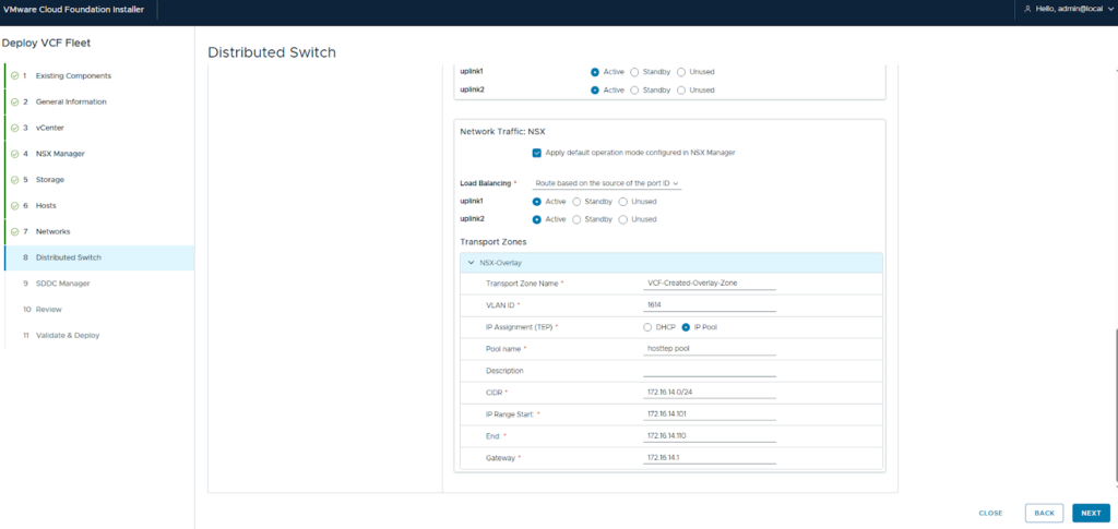 - DVS Configuration: Select the desired DVS model, configure all port group details, and set up the overlay network (as shown in the accompanying screenshot).