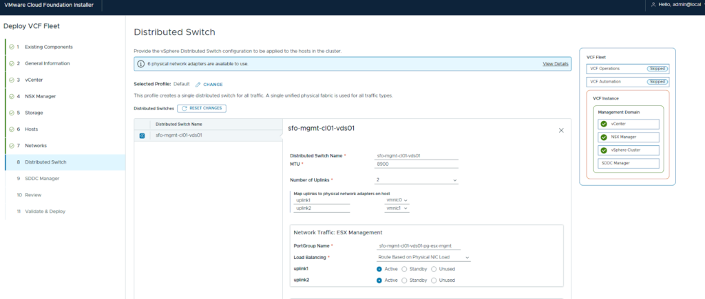 If the VCF Installer is running externally, you will be prompted to enter the SDDC configuration.